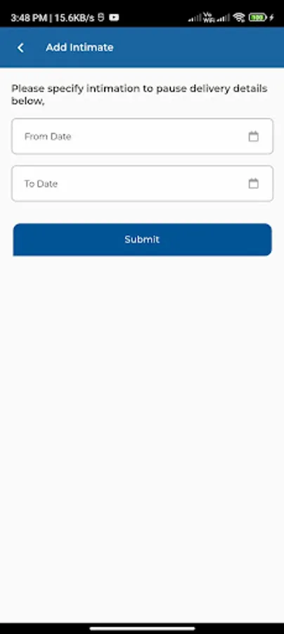 3. Intimation Option for Pausing delivery for a certain period.