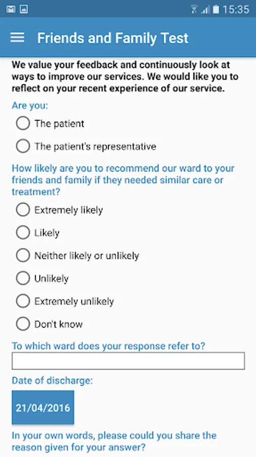 Feedback from the public is vital for NHS and the app allows a patient or visitor to complete an anonymous NHS Friends and Family test to feedback information about their experience directly to the Southport hospital.