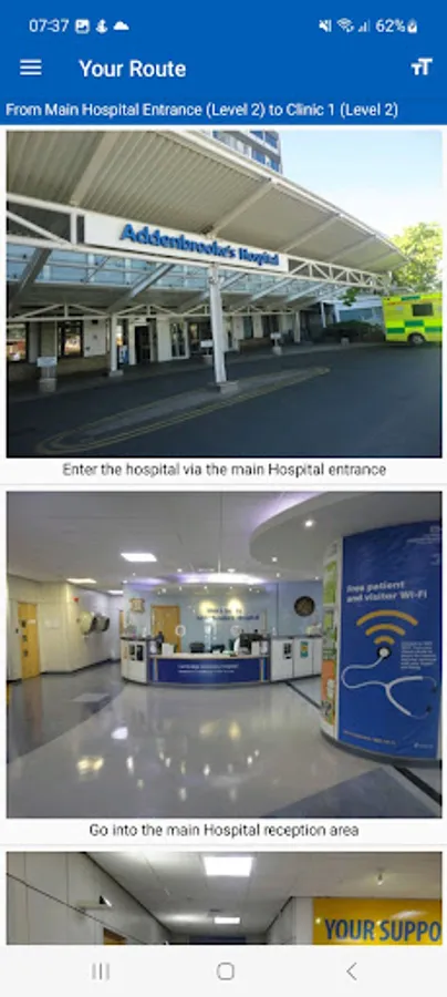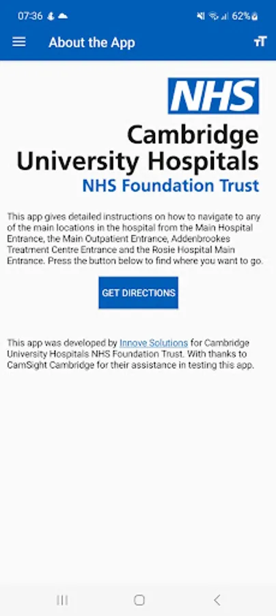 The Addenbrooke’s and the Rosie Hospital App gives easy to use step-by-step directions to clinics, wards and facilities across the site using a mixture of text and images.
