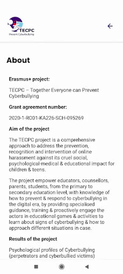 The project empowers educators, counselors, parents, students, from the primary to secondary education level, with knowledge of how to prevent & respond to cyberbullying in the digital era, by providing specialized guidance, training & proactively engage the actors in educational games & activities to learn about signs of cyberbullying & how to approach different situations in cases.