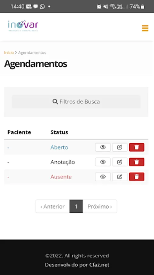 It is also possible to make appointments, PEP (Electronic Patient Record), Integration with any equipment that uses the DICOM protocol (PACS/Worklist), Financial Management, Control of Agreements and Glosses, everything can be accessed from anywhere by the clinic administrators.