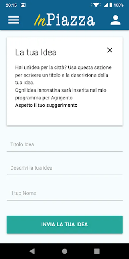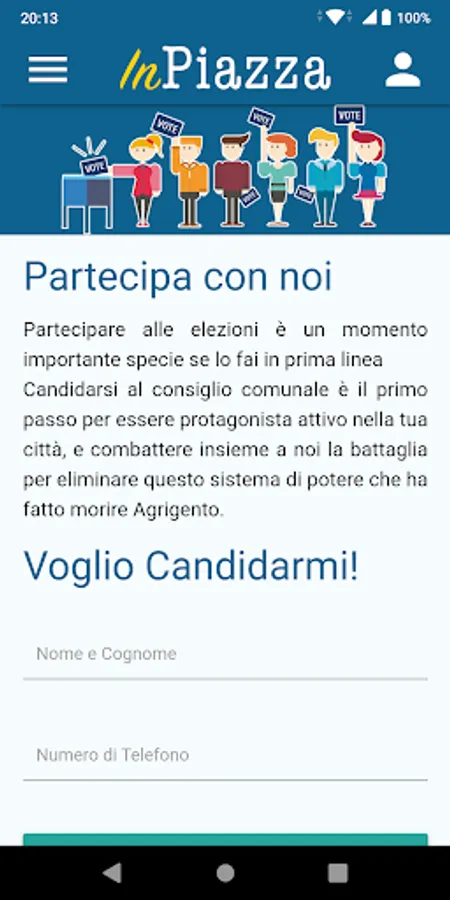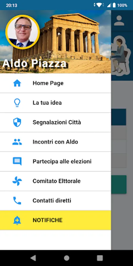 The first APP for Agrigento that communicates directly with citizens. It collects ideas and disruptions and plans its electoral activity with Aldo Piazza.