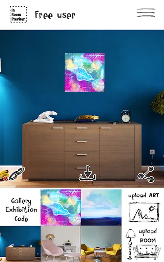 Just register a gallery in the app and share your unique Gallery Exhibition No.