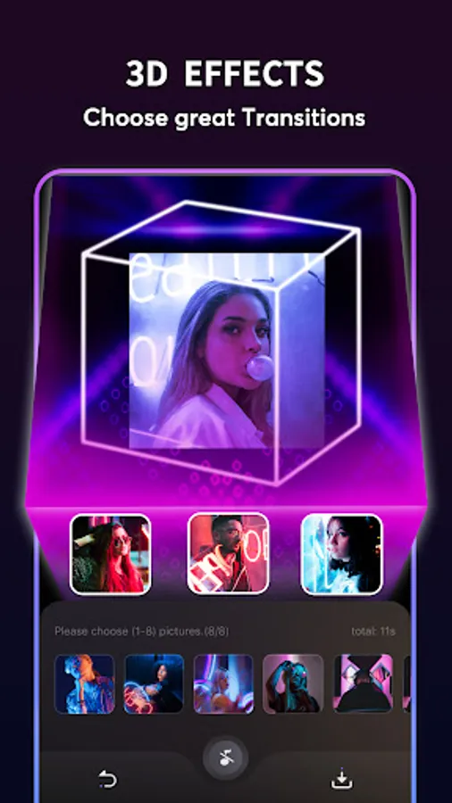 - Turn your photos & video clips into cool trend video with music and transitions!