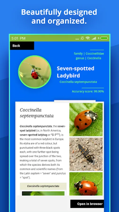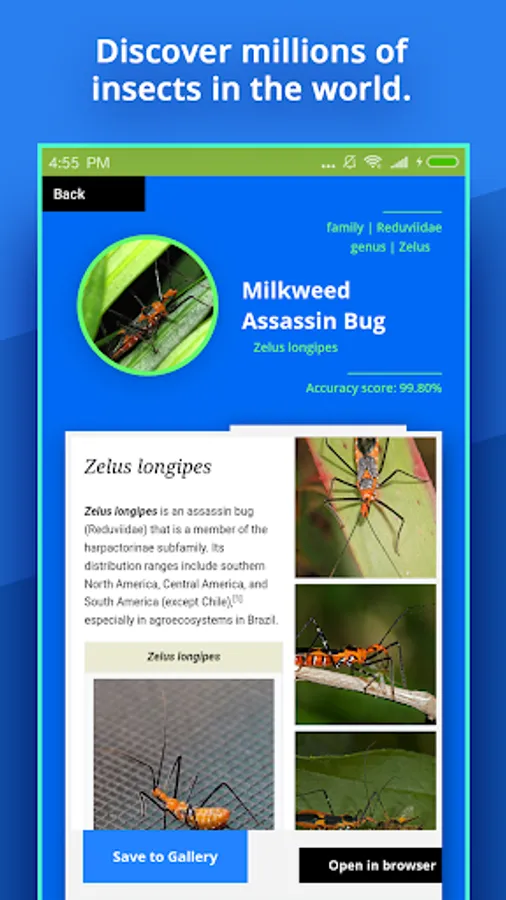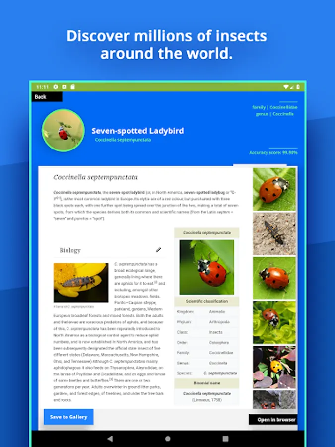 With Insect Identification, anyone can identify insects like a scientist. Just take a photo of an insect and this app will tell you exactly taxonomy of its species using machine learning technique. We only take answers from trusted professional to train our machine learning algorithm so that it can give you the best result.