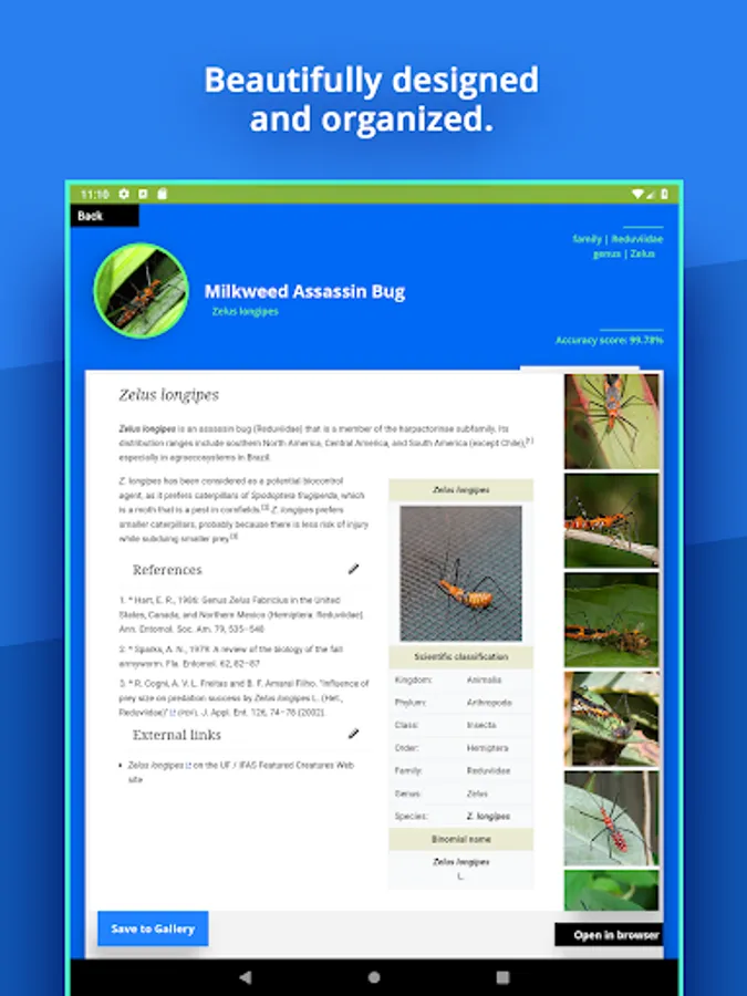 – Instantly identify any bug, spider or butterfly and many other insects from photo or camera.