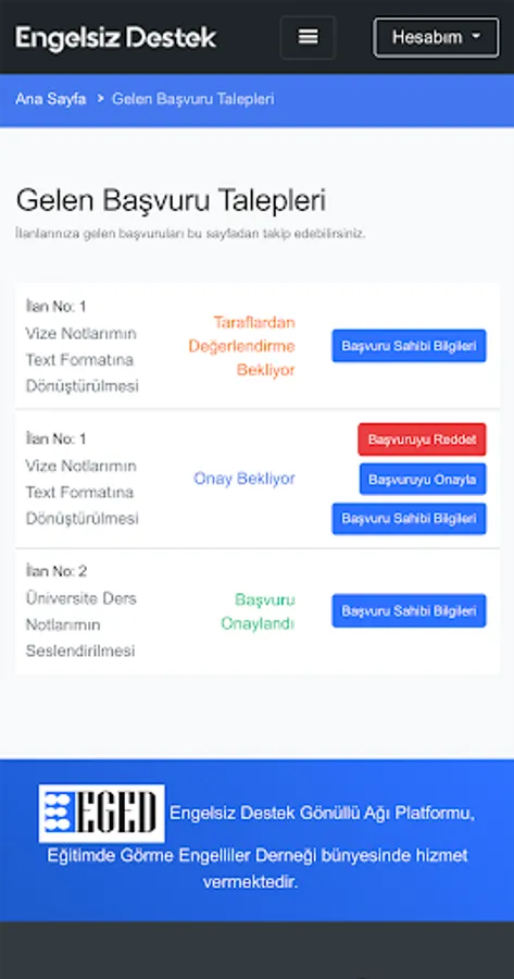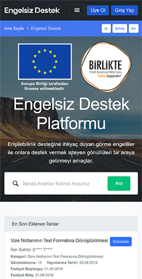 Education opportunities for visually impaired individuals in our country are increasing day by day. However, there comes a time when instant accessibility solutions are needed to resolve an accessibility problem. Here is the Barrier-Free Support Volunteer Network Platform, which aims to be there when you want to solve a problem with the support of volunteers.