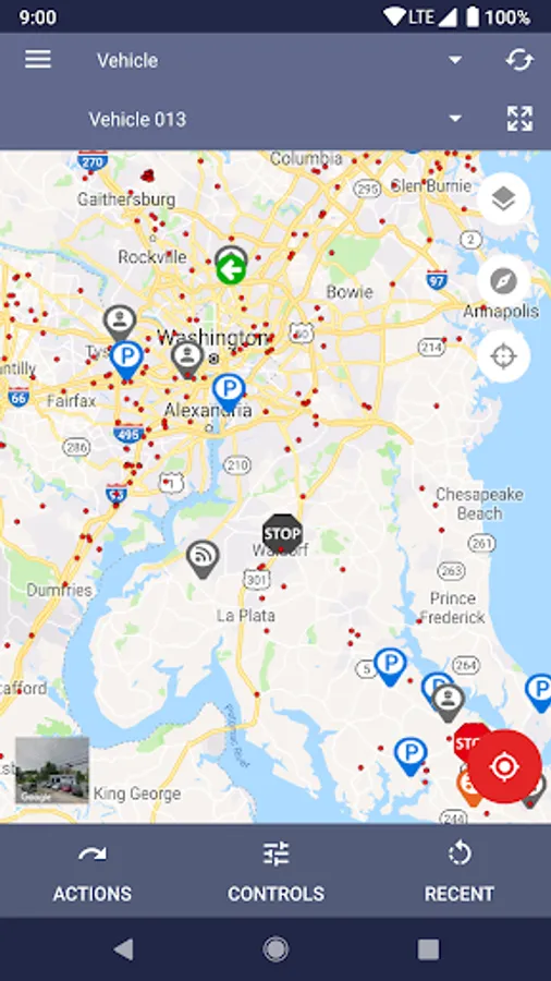• Mapping: views for Standard or Satellite, and layers for traffic and businesses. Instantly know the status of your fleet through color-coded event icons.