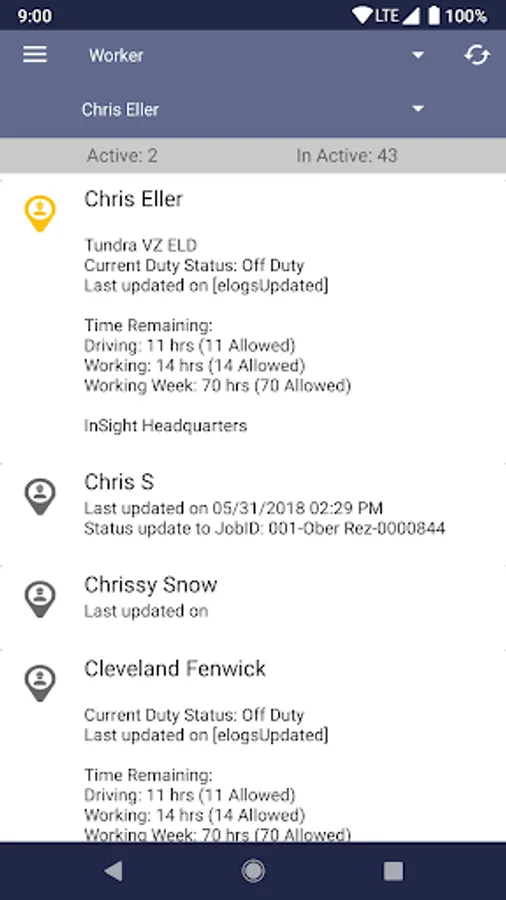o Worker activity – driver status changes, job updates, barcode scans, form submissions, HOS, inspections