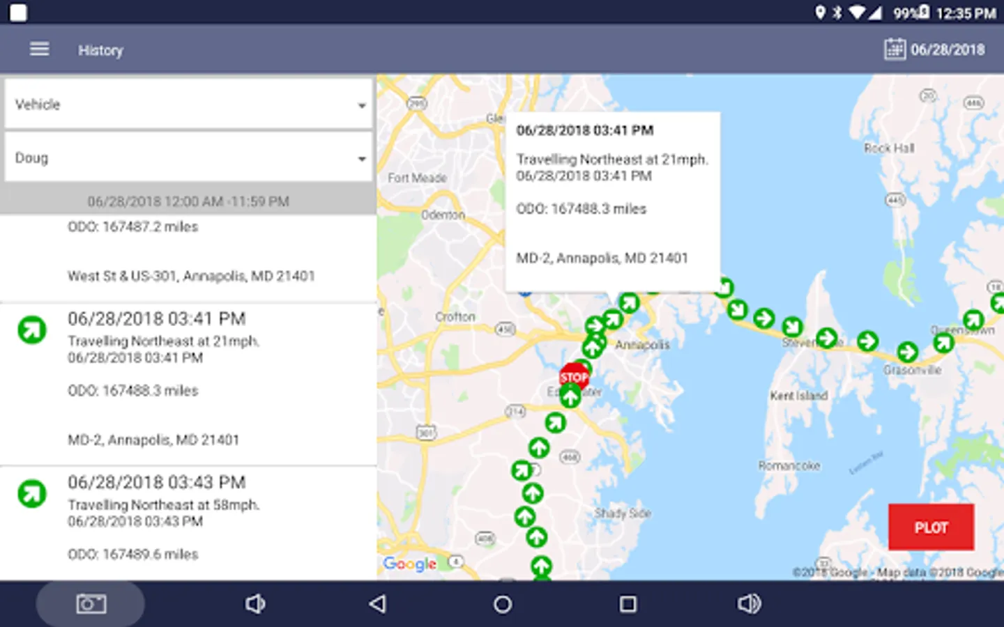 • Plot the historical location and status data for everything you track. You can also view these events chronologically in a list for easier tracing.