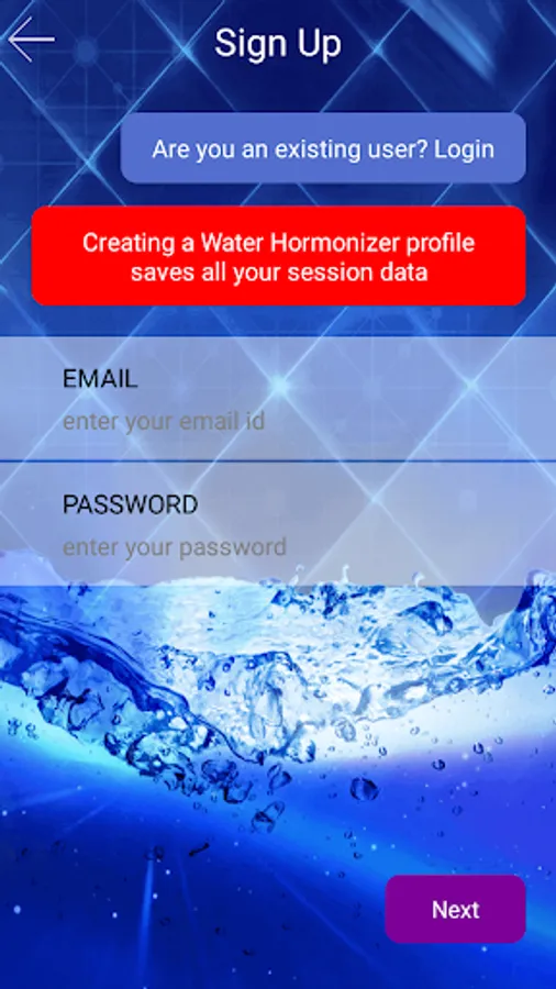 Place the liquid on top of your device and allow the app to harmonize your water for a full 3 minutes.
