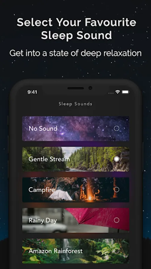 - Choose your favorite sleep sound/sleep music (e.g. Campfire, River Sounds, etc.)