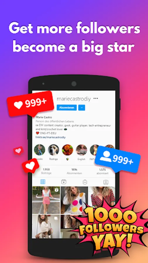 Be a star in our community in our app is best way to have more likes and more comments in your posts of social medias.