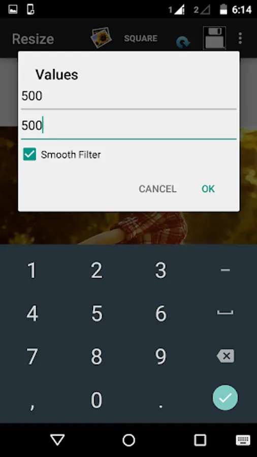 Note: In custom resize option, when smooth filter option is checked, image actual dimension may vary a bit to maintain image quality.