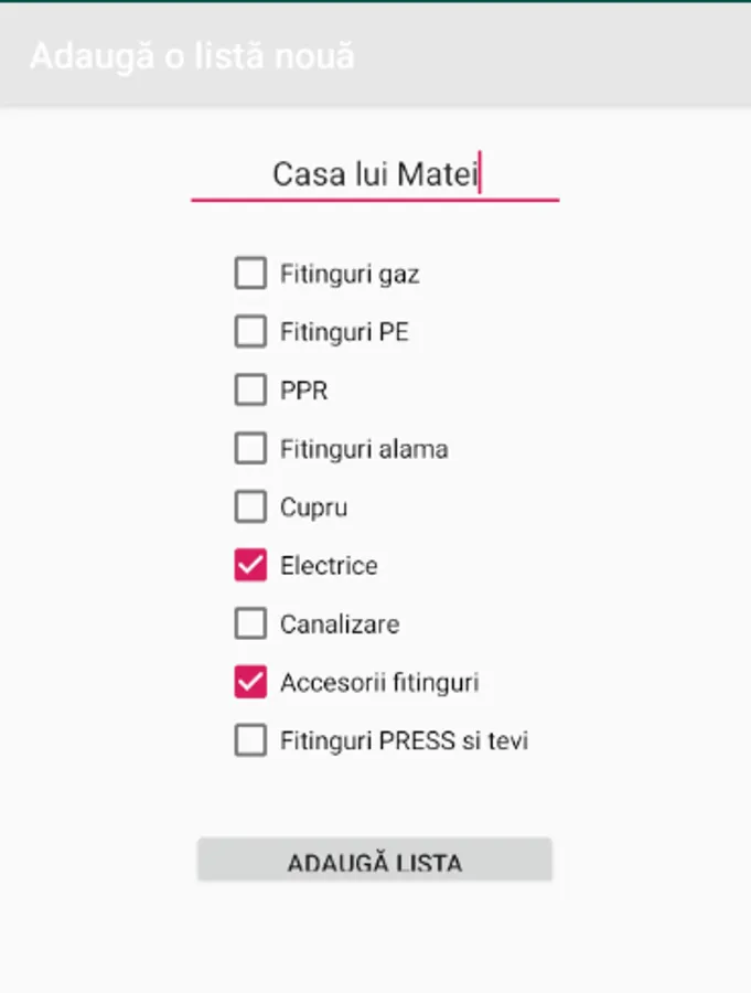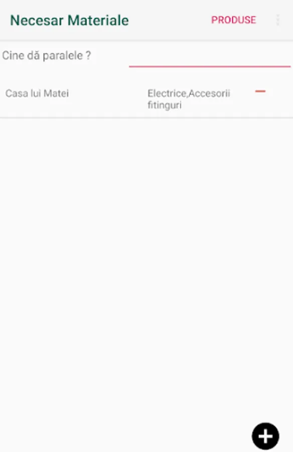 This application gives you the opportunity to create a material need. Then this list can be sent to the store you are cooperating with.