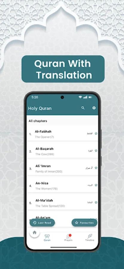 You can recite the Holy Quran with multiple translations, you can set multiple fonts for Arabic, translations and transliteration. Now with Masjid360 muslim prayer times you have full control over your Quran history, just going to the last read you will be able to see the history of the last 30 days. You can set any Chapter and Verse as your favorite. You can share any Verse to Muslim Calm and can contribute with community.
