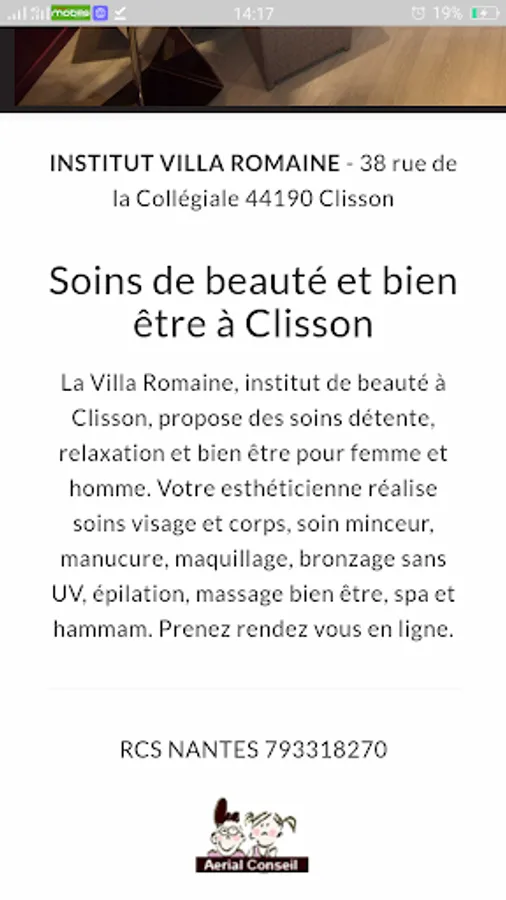 Villa Romaine institute, located in the city center of Clisson, not far from the halls, your institute La Villa Romaine is a unique place entirely focused on your well-being.