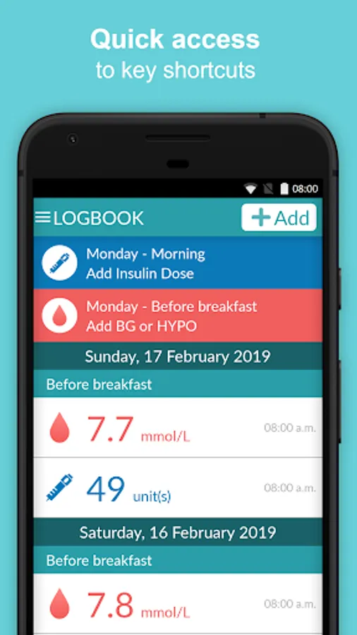 Your doctor will order the application by creating a treatment plan tailored to your needs, which generates a temporary password. When you download the app and enter your password, Insulia is already set up to follow your personalized dosing plan. Just add your fasting blood glucose values and Insulia will recommend your basal insulin doses every day. Whether you take your insulin in the morning or evening, experience hypoglycaemia symptoms or switch insulins, Insulia adapts to you so that you have accurate and reliable dose recommendations at your fingertips.