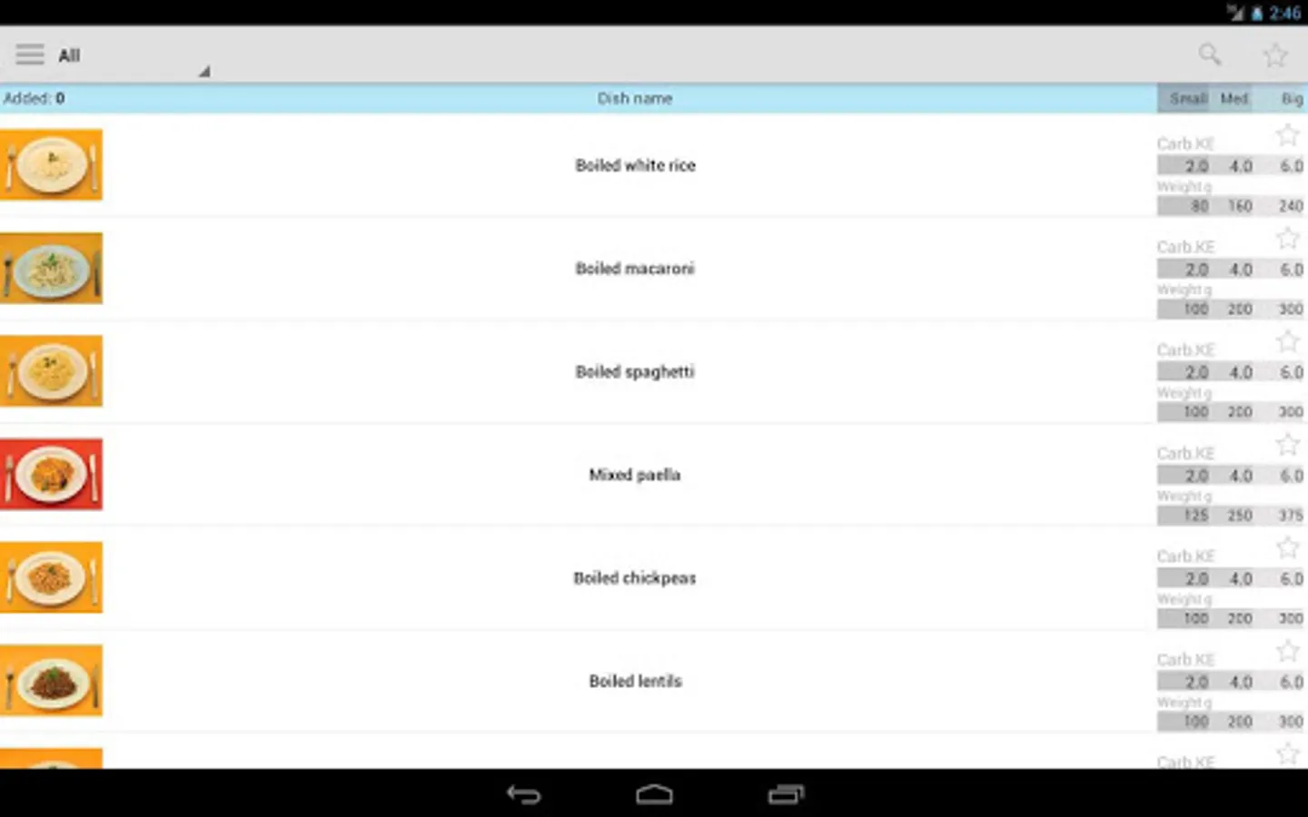 - Availability of large number of predefined sizes dish foods (including pictures) to create custom menus. They can be included in the calculation automatically.