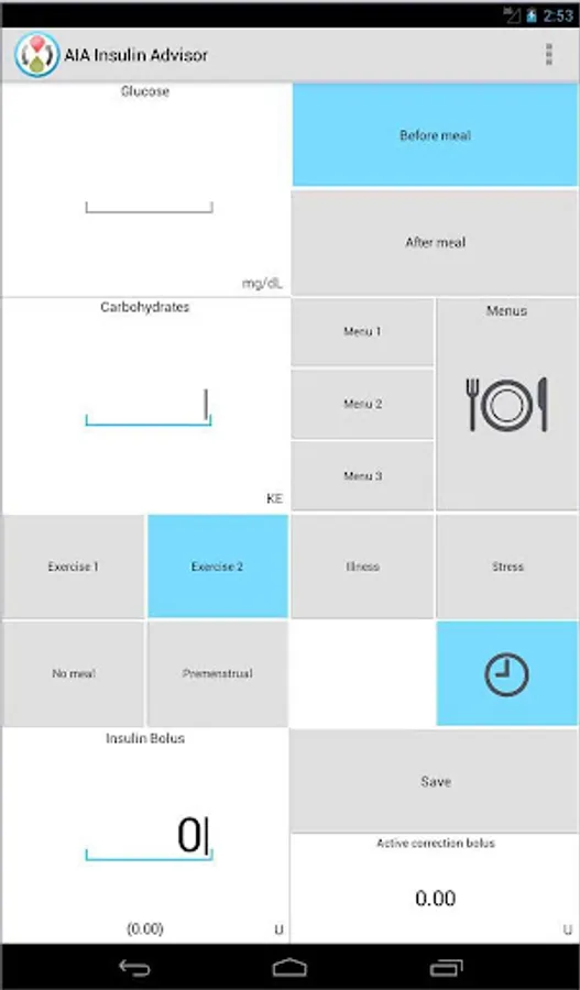 Advanced Insulin Advisor is an application that calculates the optimal insulin bolus from the current glucose and the amount of carbohydrates to eat. The calculation doesn’t only take into account the current values, but also the residual active insulin in the body from previous injected boluses. All of this is done automatically.