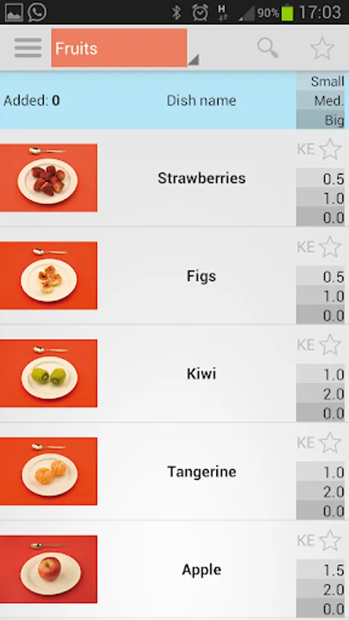- Availability of large number of predefined sizes dish foods (including pictures) to create custom menus. They can be included in the calculation automatically.