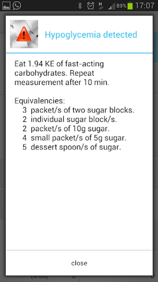 - Hyper/hypoglycemia alerts with carbohydrate intake recommendations in different formats.