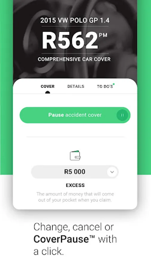 Not driving? Pause the accident portion of your car cover and save up to 50% on your premium. You’re still covered for theft and Mother Nature. Simply unpause when you hit the road again.
