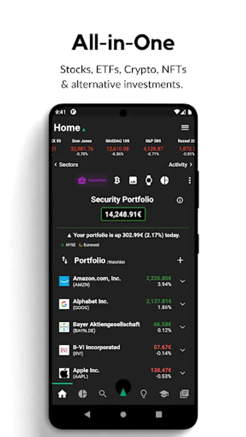 ETF Finder. Stocks. NFTs. Crypto. Portfolio Analytics. News. Planner. Live Prices. Academy. All in your pocket.