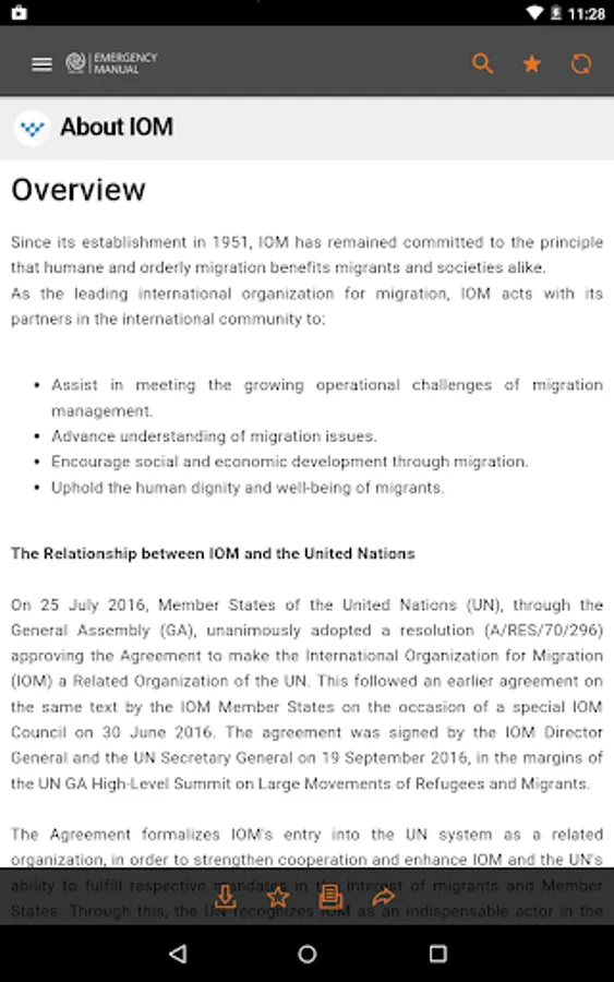 The IOM Emergency Manual is designed to provide practical, operational guidance to IOM staff working in emergency contexts. In addition to providing guidance on IOM procedures and practices, the Emergency Manual also makes available information on Inter-Agency Standing Committee (IASC) frameworks and processes.