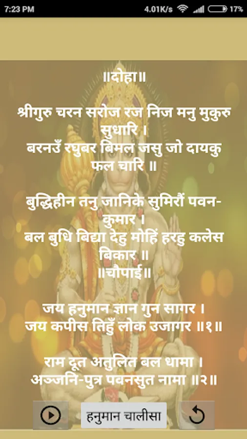 - Hanuman Chalisa lyrics are displayed in both english and hindi.