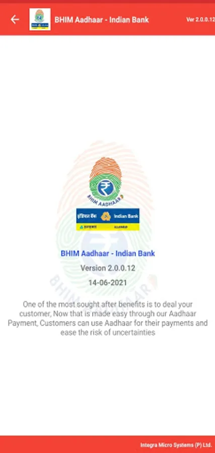 Bhim Aadhaar - Indian Bank" Mobile app will be used for Merchant On-Boarding /Registration by due process for acceptance of Bhim Aadhaar based payments from Customers. Customers payment will be credited directly to the Merchant account instantly in a secure environment using biometrics authentication.