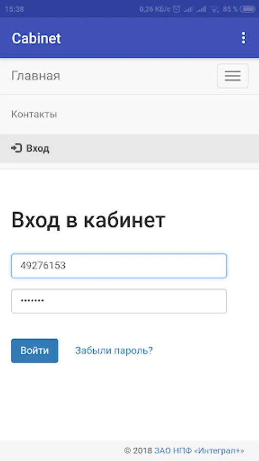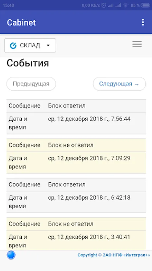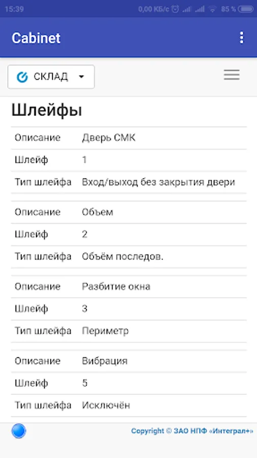 Cabinet Integral + - specialized software for working with RSPI Struna-5 manufactured by ZAO NPF Integral +