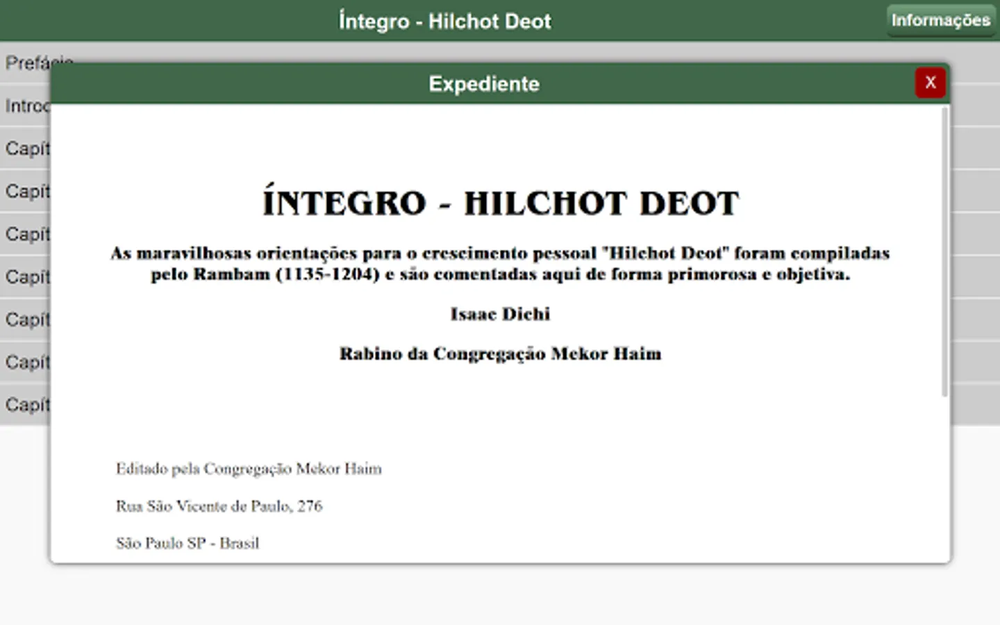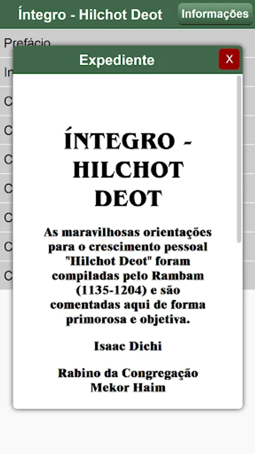 The wonderful guidelines for personal growth "Hilchot Deot" have been compiled by Rambam (1135 - 1204) and are commented here in an exquisite and objective manner.