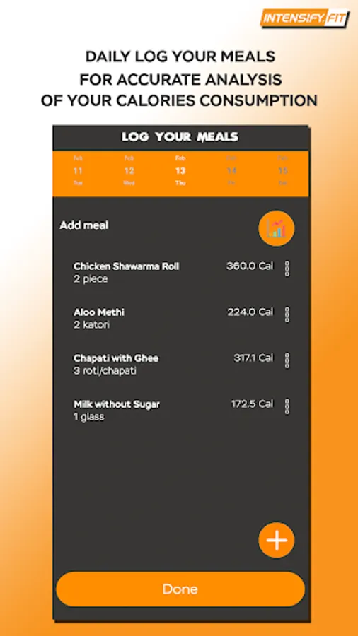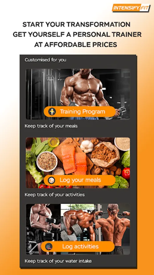 Intensify.Fit is a complete Fitness Solution. This app can be used as a complete Body transformation tool. If you want to lose fat, or build muscles, increase your stamina and endurance or you just want to increase your overall health and want to adapt to a healthy lifestyle then Intensify.Fit can help you a lot in achieving your goals. Intensify.Fit covers all the aspects of Health and fitness by incorporating all the tools that help a person become healthier. Intensify.Fit contains a powerful AI-based workout planner that creates a tailor-made customized workout program based according to an individual's current fitness level,their goals, their daily activeness, their body measurements and the workout type( Gym or Home). The workout programs are created according to the user's given specifications along with a simple Fitness Assessment test (optional) which help us further know your current fitness level more accurately. The app creates both Gym and Home workouts as per your preferences. The Exercise database contains tons of Gym and bodyweight exercises with detailed instructions and instructional videos to help you understand the correct form, posture and movement of the lift to make the workout injury free. Intensify.Fit not only just concentrates on workout programs to make you achieve your goals, But also emphasize on your nutrition. As the saying goes abs are made in the kitchen not in the gym. Nutrition plays an important role in your fitness journey. Without good nutrition one can not achieve a healthy and good physique/figure, thats why Intensify.Fit has a built-in meal logging system in which you can log your daily meals which gives you a good estimate of the calories you have consumed throughout the day. Intensify.Fit comes with BMI calculator, Calorie calculator and a BodyFat Calculator just to help you know your current health status, it also contains sample diet plans which help you lose weight efficiently through good nutrition.