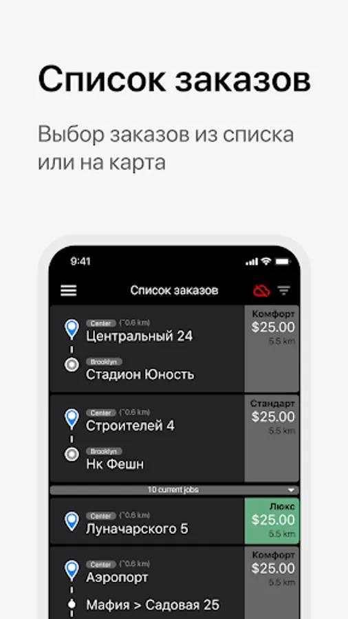 - automatic distribution of orders in order of priority or according to the radius of supply (at the discretion of the driver), the radius of supply to the order can be chosen independently;