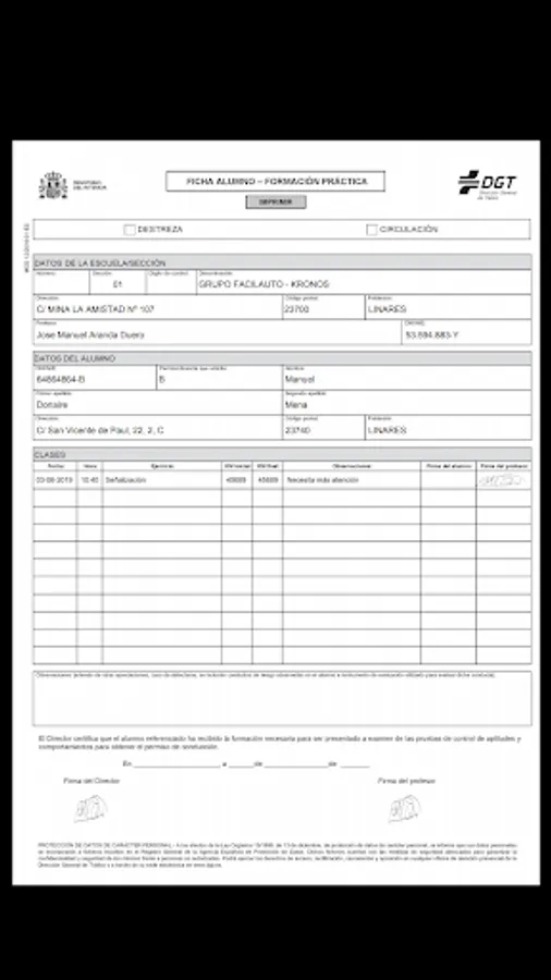 - Control of practical classes day with saved mileage and class time.