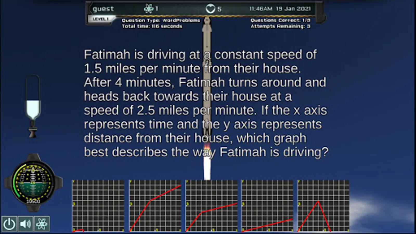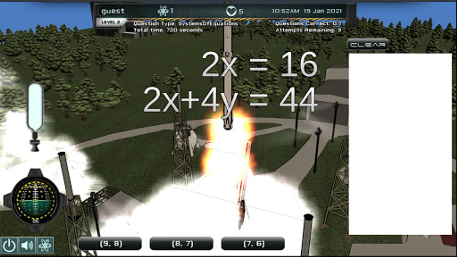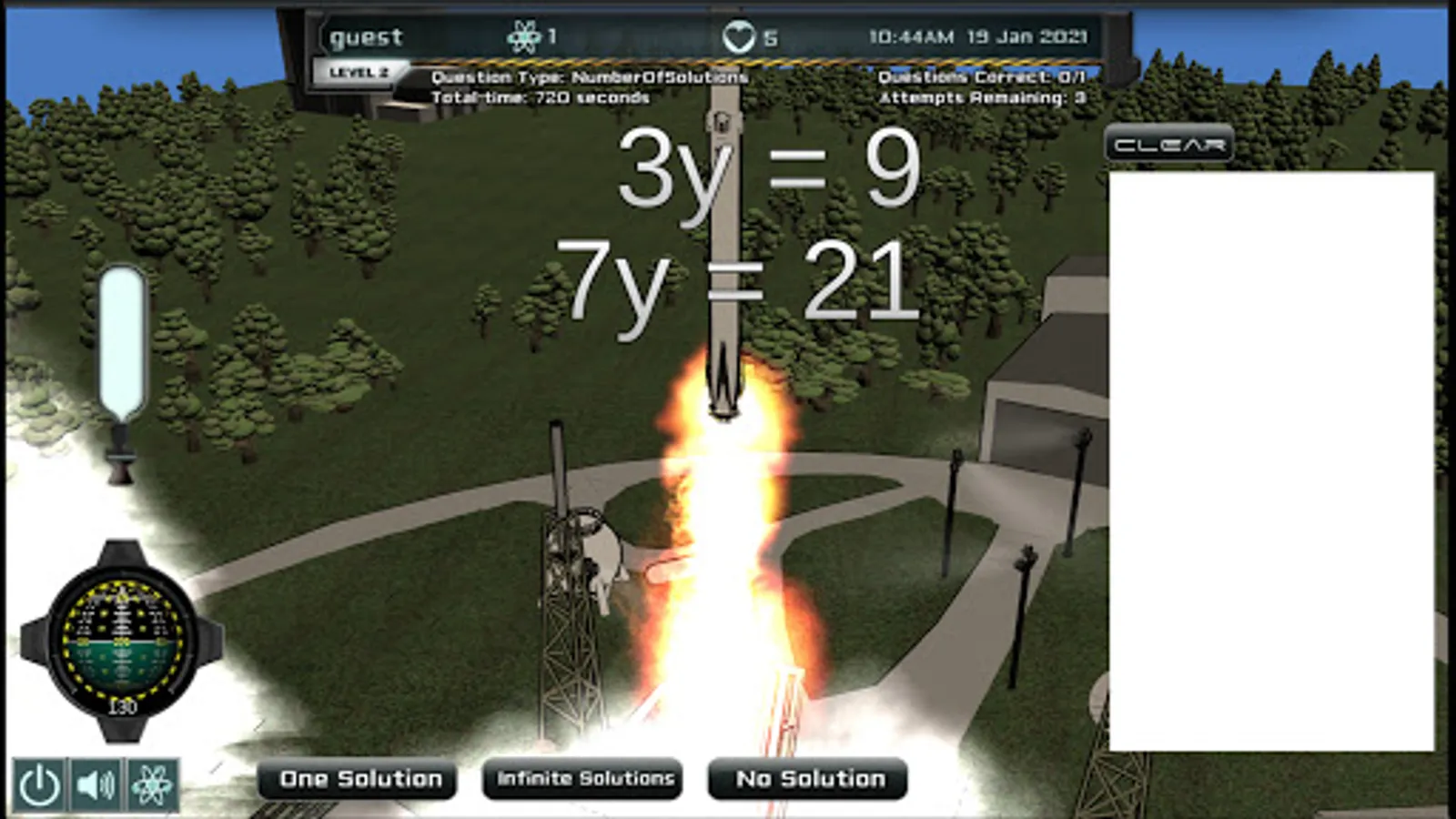 Assess proficiency in addition and subtraction, factoring, functions, multiples of ten, number of solutions, quadratics, rates of change, rocket trivia, systems of equations, and word problems. Rewarding levels of gameplay maintain engagement. You will forget you were doing math as you launch rockets into space! You may optionally buy reports in order to analyze what questions were missed. Teachers and parents may find this optional feature particularly useful.