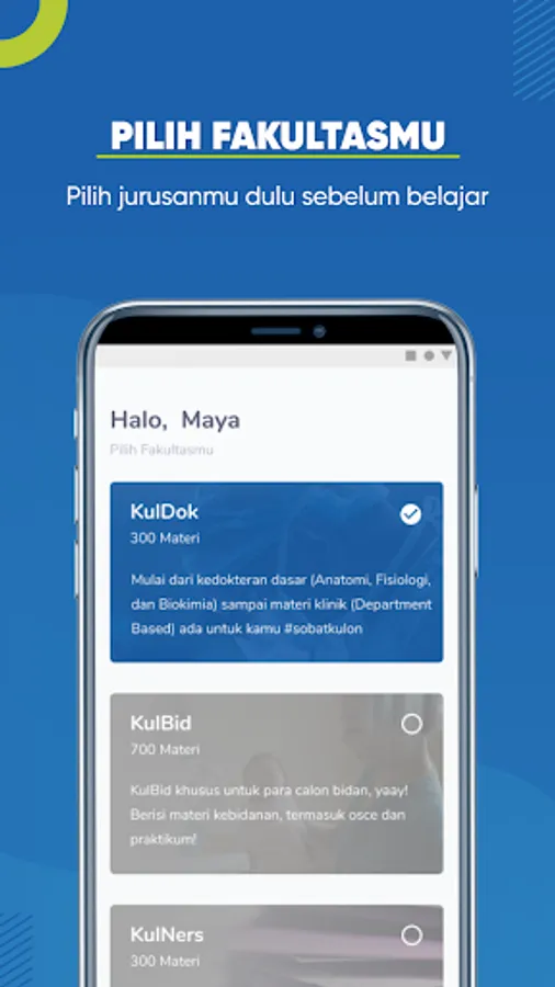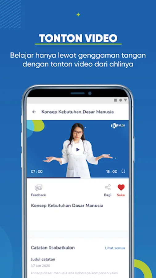 Online Course or KulOn is an online education platform that helps students to study anywhere and anytime. Currently, KulOn is focusing in the fields of Medicine, Midwifery, Nursing. KulOn has a goal of equitable education throughout the country, containing high quality material and delivered by trusted mentors in their fields!