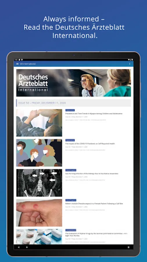 Deutsches Ärzteblatt International — the German Medical Association’s official international bilingual science journal — is a weekly, peer-reviewed, open-access online journal of clinical medicine and public health.