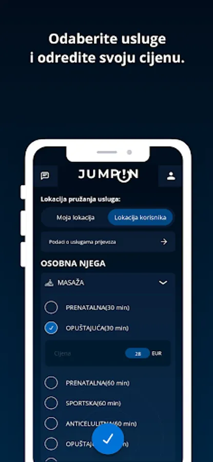 Jumpin - osobni asistent koji povezuje kad je najpotrebnije - zasad je dostupan na zagrebačkom području, koje čini 700 tisuća potencijalnih klijenata. Neovisno o tome jeste li mladi poduzetnik ili obrtnik, ili imate već uhodan posao, radom putem Jumpin aplikacije brzo i jednostavno proširite bazu klijenata, bez potrebe za oglašavanjem ili najmom prostora i plaćanjem režija.