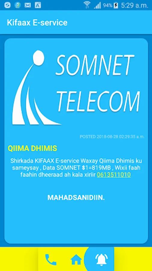 kifax Somnet somtel data internet soomar yool raqiis suuq adeeg somdata somalia soomaaliya