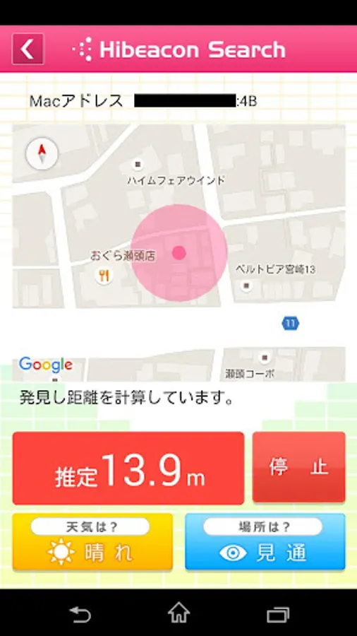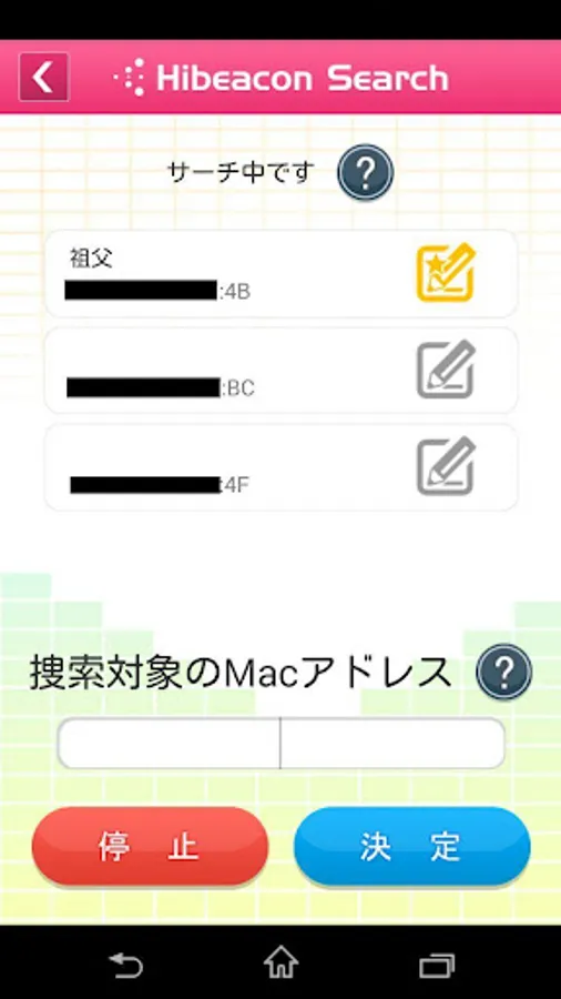 - Tap the Mac address of the high beacon that you want to search, and tap the Enter button.