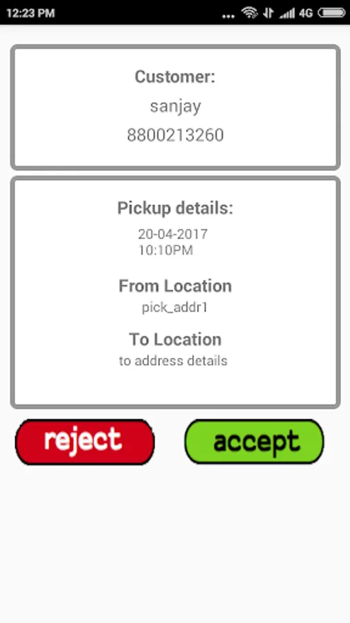 2 . customer information eg, name ,contact no. , pickup address ,