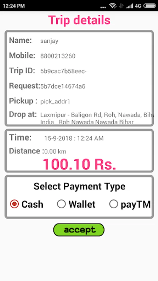 3. after complete the journey see the calculated fare.