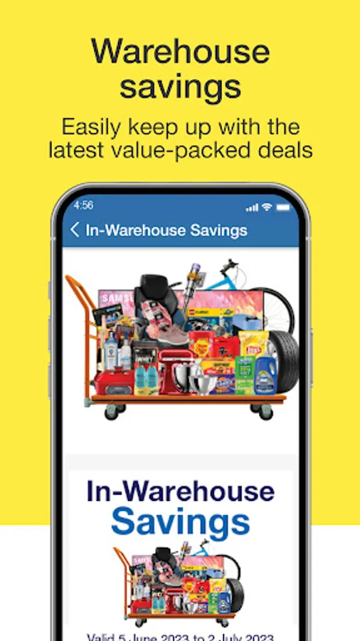 Easily keep up with the latest value-packed deals and warehouse savings - all stored conveniently in your App.