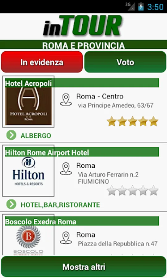 On INTOUR find useful information on the Salento, the Basilicata, the Maremma, the province of Messina, Verona, Roma, Oristano, L'Aquila, Catania, Monza Brianza, Agrigento, Bari, Milan, Pavia, Cagliari, Olbia-Tempio, Trieste, Ogliastra, Trento. INTOUR lets you know instantly the attractions of the area, and will provide information on where to eat, where to sleep, where to shop. Thanks to INTOUR you can contact providers of any type of service you need, in an easy and immediate way. Download INTOUR for free if you need information about a locality.