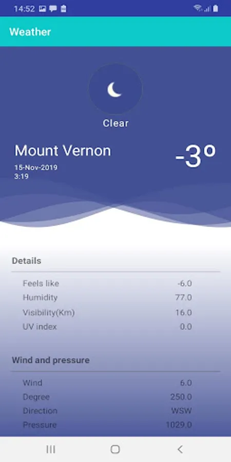 The Atmo weather app includes the current temperature in Celsius, forecasting details upto 7 days and the facts of sunrise and sunset times according to city time zone along with Wind details.