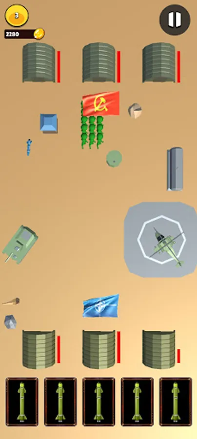 Defend your country with your rockets. To do this, simply drag the cards. You can also get a stronger rocket by combining cards.