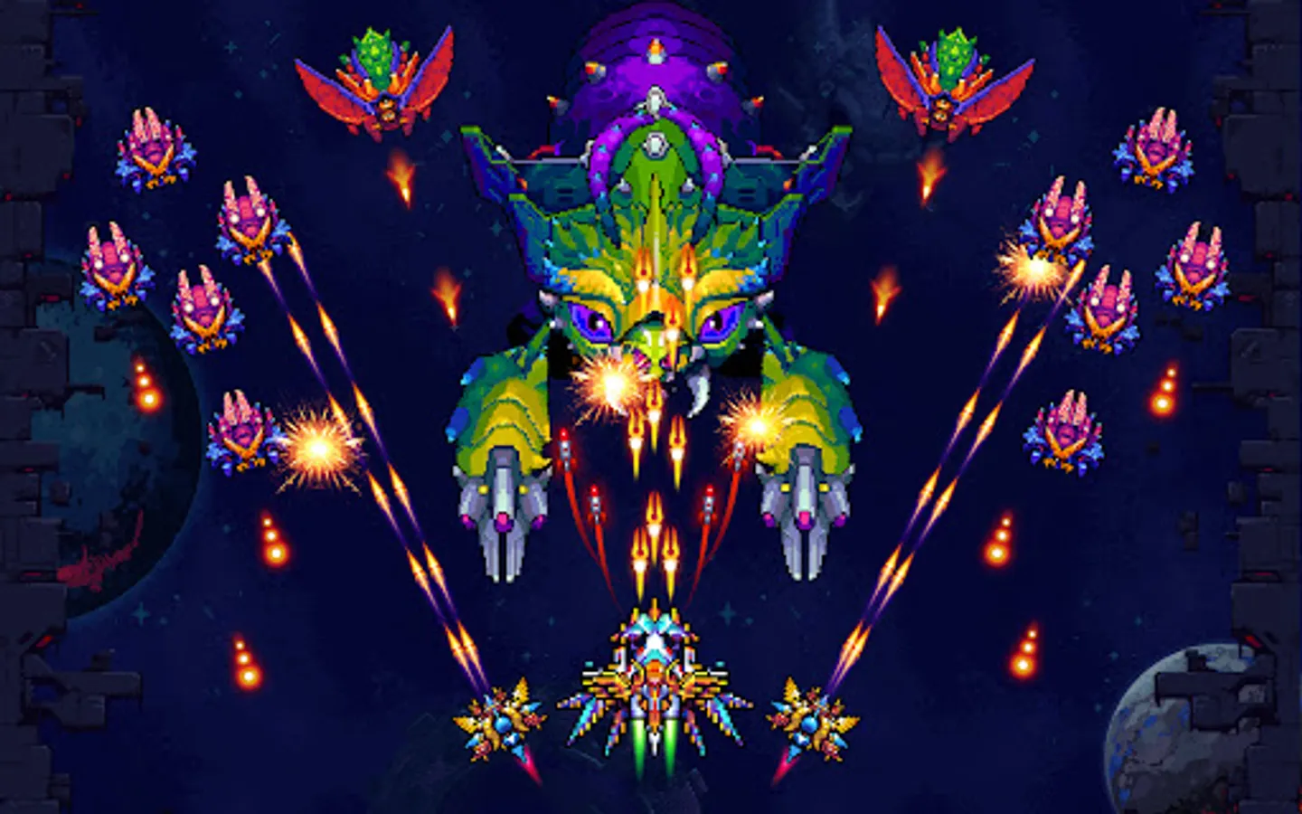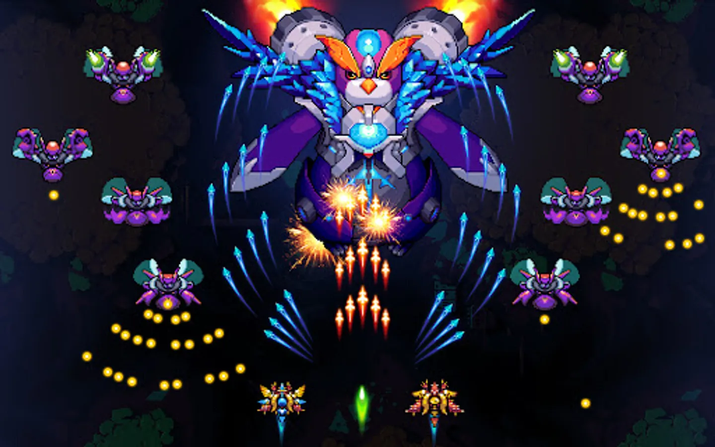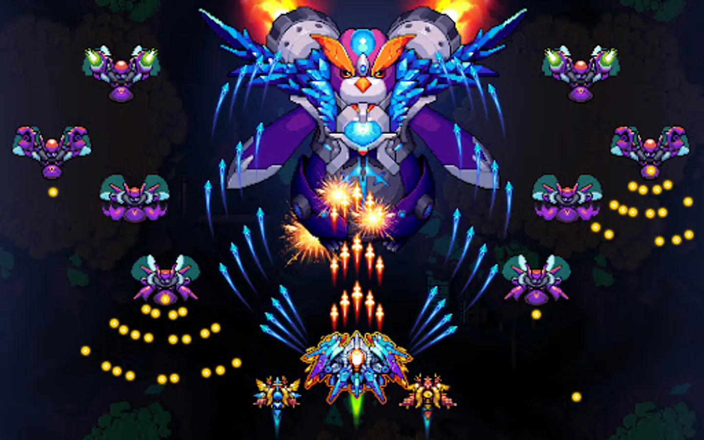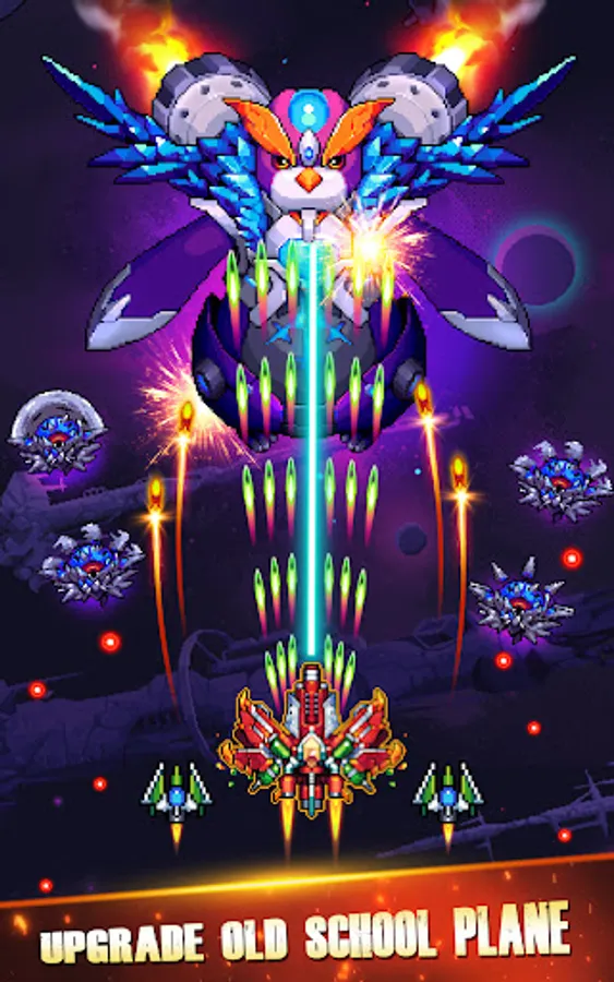 - Classic visual: Gorgeous Pixel graphics remind you of old-school retro games and fit vertical shooters. This top-down shooter game makes sure you can't take your eyes off the battles and relive the old feeling while playing the classic scrolling game!