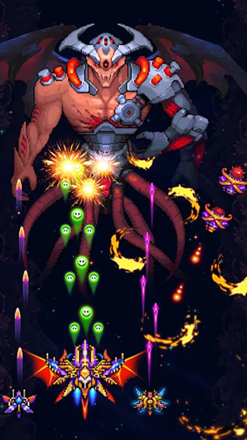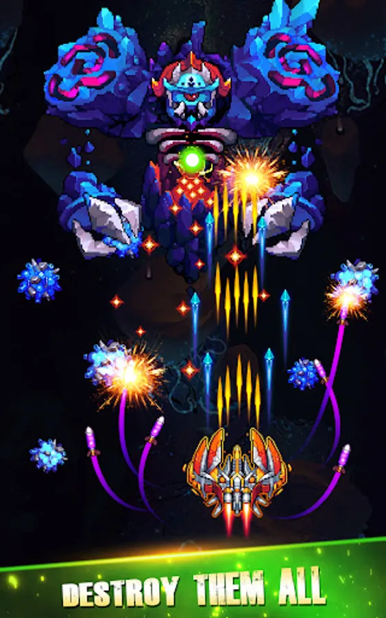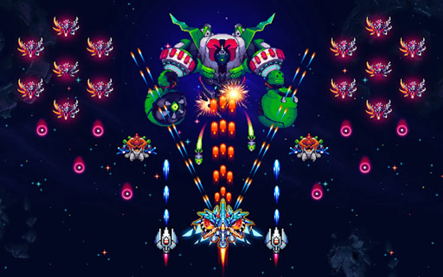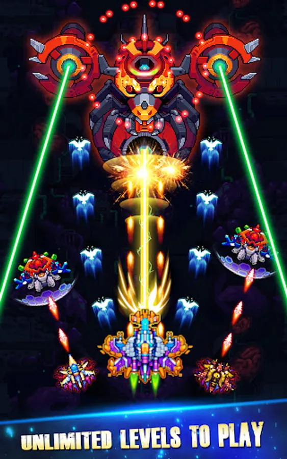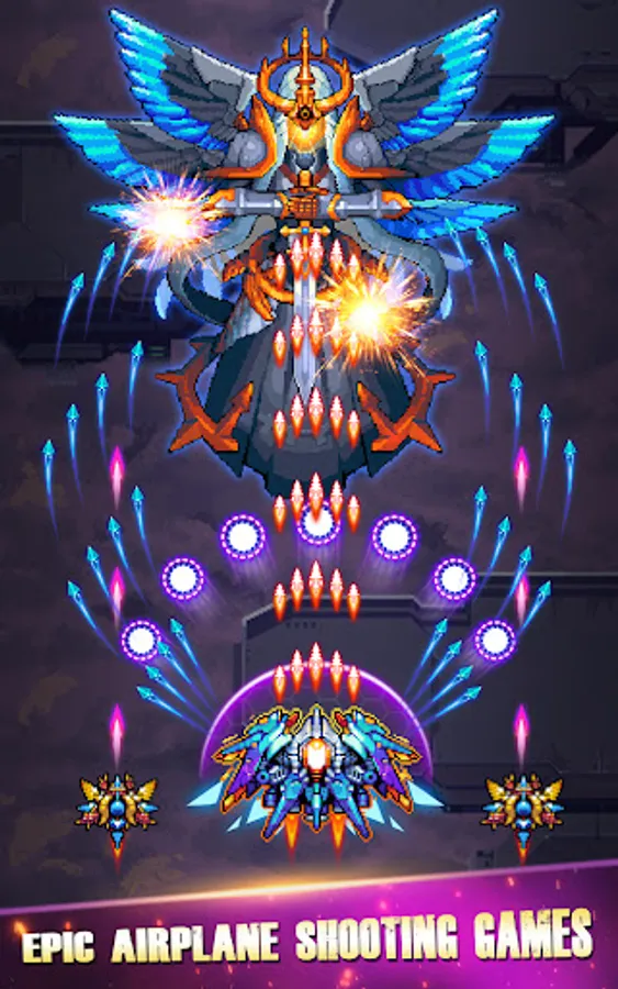 - Classic visual: Gorgeous Pixel graphics remind you of old-school retro games and fit vertical shooters. This top-down shooter game makes sure you can't take your eyes off the battles and relive the old feeling while playing the classic scrolling game!